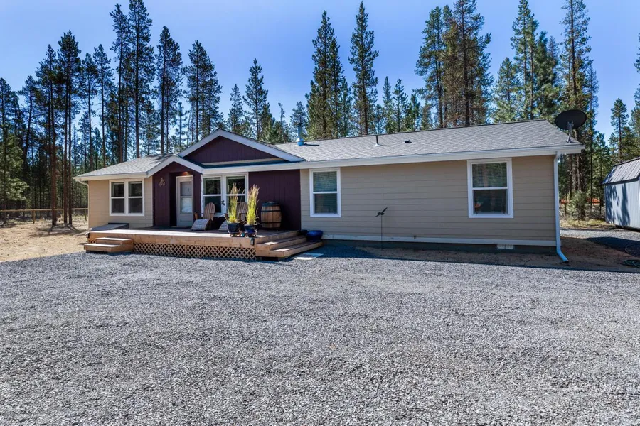 Fresh and gently lived in 2021 Marlette home. Situated on a lovely, private corner lot location in the community. Hickory kitchen cabinets, stainless steel appliances plus a kitchen island bar. The family room highlights a beautiful floor to ceiling wood built ins. Front and rear Trex decking, 50 amp power and water for RV hookup. Sale includes 9x40 Conex storage container and 10x16 wood shed. New perimeter ranch fencing and graveled circular pull thru driveway. 30 year Landmark 30, composition roof. This home is a must see and move in ready! Wagon Trail Ranch includes road maintenance, snow plowing, owners clubhouse, Fire Wise Certification and so much more!