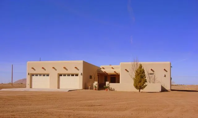 Desert Pueblo House in Deming, New Mexico. Entry Courtyard welcomes you to this 2875 sq.ft. custom built house on 1+ acres close to town. Kiva fireplace