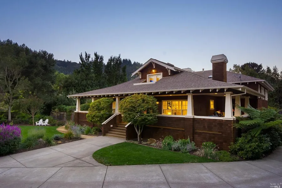 Located in the prestigious, gated community of Shadow Creek, sits this impeccable Craftsman home of approximately 3700sq.ft. This light filled estate property is straight out of the RH catalog, with chic lighting and designer finishes throughout. The heart of the home is the large, open kitchen/family room combination which opens via French doors to the sprawling, level yard of more than one acre (per tax records).Here you'll find fruit trees, grape vines and lush landscaping (all irrigated with well water) as well as a pool site. Several covered porches are perfect for outdoor entertaining and al fresco dining with family and friends. Steps from your front door you will find world class hiking, biking and horse trails. A bit further west you come upon the majestic Point Reyes Seashore and the iconic town of Stinson Beach. This very special property is not just a home, but a true California lifestyle. Sellers have submitted plans to the town of Fairfax to build a pool and an ADU.