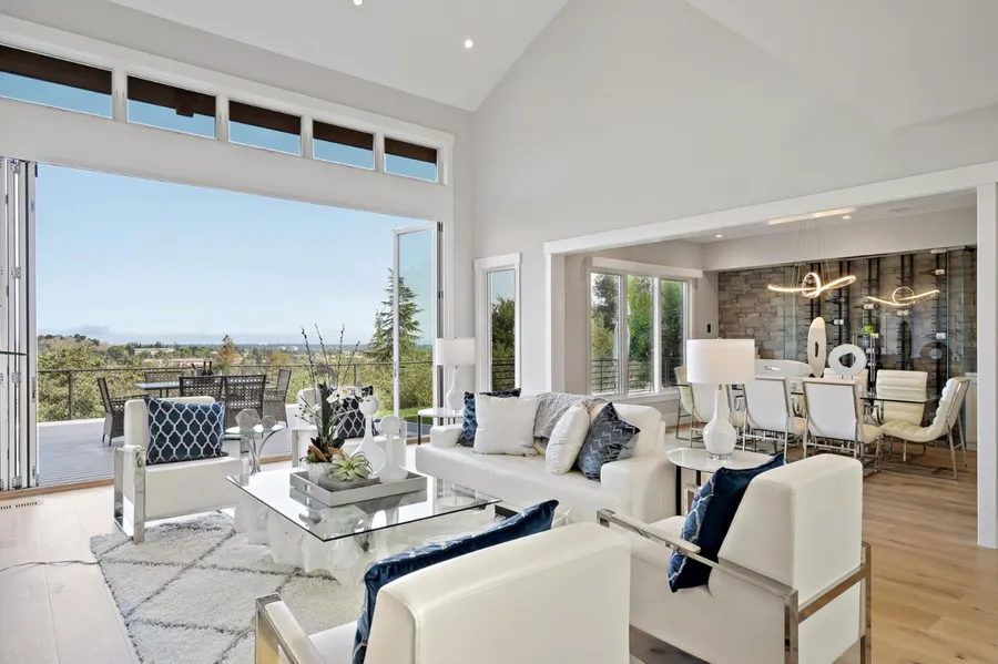 A 2 years old contemporary architecture. Unobstructed bay view! Custom home, 5 bedroom suites, 5 full bath, 2 powder rm, 7488 sq ft living space, 1.09-acre lot. Spanning 3 levels with elevator. Artistically designed and crafted with every detail. Soaring high-ceiling living rm offers breathtaking view and formal dining area. The state-to-the-art kitchen is a chefs dream. It is furnished with huge countertop island, 40" Wolfe stove, side-by-side Sub Zero fridge & freezer. Built in coffee machine! 2nd floor has spacious master suite with breath taking view and huge walk-in closet. 2 additional spacious bedrooms suites in 2nd floor. After purchase seller made approx $800K improvements that took 7 months to complete. Upgraded A/V, alarm & iPad based controls. Basement provides huge recreational area with wet bar and gaming area, spacious gym, temp. controlled wine rm, guest bedroom, & spacious, modern home theater! Palo Alto schools. Conveniently located close to Stanford, and highway 280.