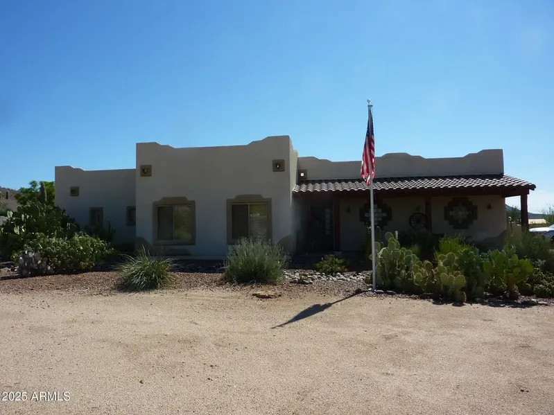 Discover true Desert Charm in this Santa Fe style ranch home, perfectly situated on 1.1 acres with sweeping mountain views and plenty of room to live the lifestyle you've been dreaming of. Designed with both comfort and function in mind, this property is ideal for horse lovers and those who appreciate wide-open space. Equestrian amenities include lighted horse stalls, secure no-climb fencing, a tack barn with storage, water access, and a pull through corral. The property also features an RV hookup and a huge three-car garage for all your vehicles, tools, and toys. Inside, you'll find thoughtful upgrades such as a reverse osmosis system, shuttered window coverings, tile flooring, and a newer HVAC system (on a bi-annual maintenance contract) for peace of mind. Step outside and enjoy