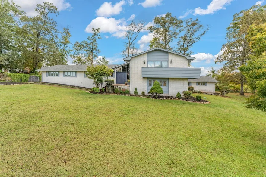 This home has so much classic charm, w/ recent new hardwood flooring, paint updates, & granite countertops to make it feel new & fresh. Upon entering the inviting foyer, you will be captivated by cathedral ceilings, iron stair railing, built-in brick planters, & plenty of natural light. The main level kitchen w/ eat-in breakfast area is well-equipped with abundant, real, solid-wood cabinetry. A large living room/dining room combo off the foyer and kitchen makes for ample entertaining space. There are 2 sets of double doors to open the space up to the back yard, which would be a perfect pool spot. Down the stairs from the foyer, you are sure to fall in love with the dry bar and the serene sound of the indoor rock waterfall. A second living space/den is found downstairs with a rock fireplace. Just off this den is a private patio area to enjoy the chirping birds and wildlife; guest home is just a few short steps from here. Also downstairs is the first of two owners' bedrooms with an ensuite full bath. Upstairs from the foyer, you will find 3 more bedrooms, two of which share a hall bath with a skylight. The fourth is also an owners' suite with full ensuite bath, cathedral ceilings, and balcony access. The over-sized 2-car garage offers plenty space for tools, workshop area, storage, and 50-amp plug. You will also find the laundry here. Attic is also partially floored for additional storage. With a new roof in 2020, new French drain in 2025, and two brand new HVAC systems in 2025, you will have financial peace of mind for years to come. A 950 sq. ft. detached, unfinished guest home also has a new roof and new subfloor. It is currently used as storage, but is a blank slate for rental income, workshop, office, or poolhouse. Only a handful of homes on this quiet circle. Etowah is conveniently located midway between Knoxville & Chattanooga & just a short drive to many rivers, lakes, hiking trails, waterfalls, etc. Come call beautiful East TN home