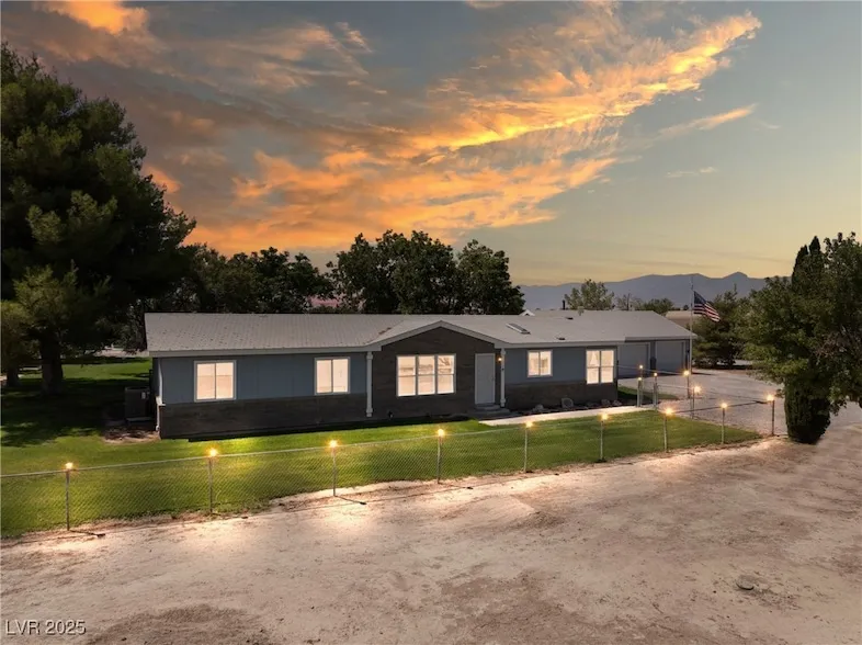 Welcome to this charming country-style 4-bedroom, 2.5-bath home on a spacious one-acre lot in Pahrump, NV. Enjoy no HOA and close to BLM land, blending comfort with outdoor living! Inside the open layout boasts beautiful real wood flooring and natural light from skylights, enhancing the inviting kitchen with a breakfast bar island. The lush backyard oasis features real grass, mature trees, and various fruit-bearing plants, including three pistachio trees, pomegranate, almond, two pecan trees, and apple and pear trees, all maintained with automated sprinklers. A versatile dining area currently serves as a walk-in pantry but can easily be converted back. Enjoy relaxing or entertaining on the covered patio, accessible from both the utility and family room. Additional highlights include a quaint barn for storage or hobbies and a large 2-car garage (26' deep x 36' wide). With a private well a...