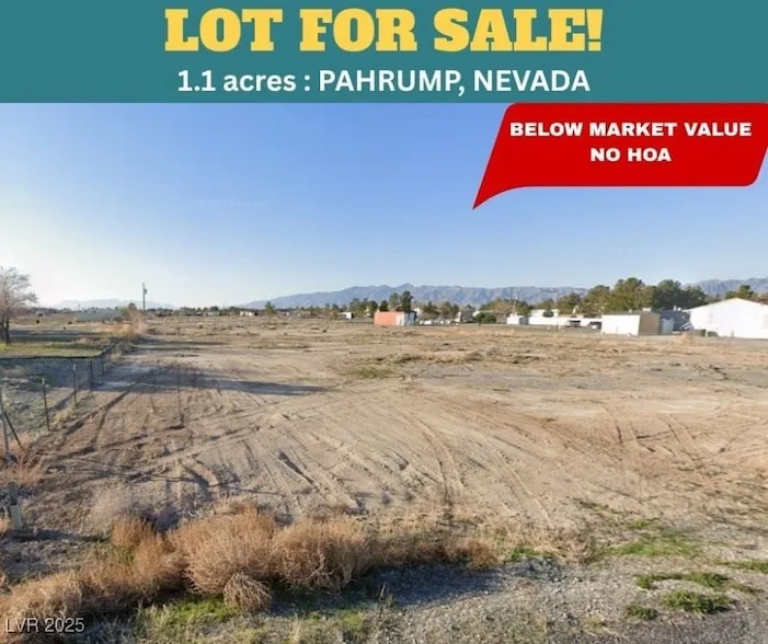 Discover the freedom of wide-open space with this 1.1-acre parcel at 1891 E Pioche Ave, Pahrump, NV! Nestled in a peaceful desert setting with stunning mountain views, this vacant, unimproved land offers endless potential build your dream home, set up a weekend getaway, or invest in the future of one of Nevada s fastest-growing communities. No HOA, easy access to utilities nearby, and just minutes from town amenities. Whether you're looking to escape the city or start fresh, this slice of Pahrump paradise is ready for your vision. Don t miss out opportunity is knocking!