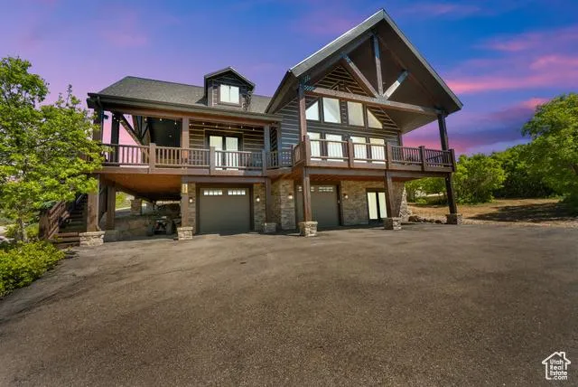 Prepare to be captivated by this incredible mountain home that sits tucked away in a quiet cul-de-sac offering the prime location for year-round mountain living or cabin getaway! This luxurious mountain retreat features an exquisite, spacious, open-concept layout for seamless living and breathtaking views from every window. With its beautiful wood/chinked exterior, covered wrap around trex deck with hot tub, this custom-built Whisper Creek log home offers the perfect blend of rustic charm with the efficiencies of a stick frame home and none of the hassles of an actual log cabin. Modern finishes throughout and perfect for entertaining. Sold furnished, complete with the inclusion of two snowmobiles! The magnificent great room is showcased by expansive windows that frame the ever-changing scenery. Experience stunning views, incredible sunsets and unbelievable wildlife. Kitchen is equipped with a walk-in pantry, granite countertops, double ovens, induction cooktop and plenty of cabinet space. Enjoy the main level ensuite and laundry and private backyard area with turf. In addition to the attached 2-car garage with electric charger and epoxy floors, there is a 2-car detached garage with a bonus finished living space above with a pool table & pingpong table. This amazing, beautifully landscaped lot with pines also offers a large parking area in the back for an RV, toys, a boat, etc. Experience the best nature has to offer and endless outdoor activities in this mountain paradise! Unlimited recreational activities include fishing, boating, world-class golf, phenomenal skiing, epic snowmobiling, hunting, ATV-ing, all at your fingertips! All of the wonderful amenities of the Heber Valley & Park City!