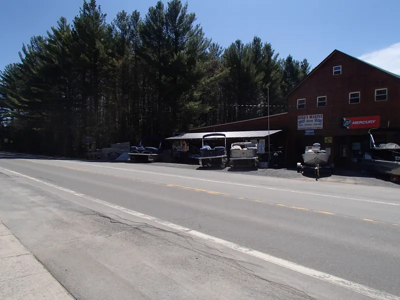 Fully operational, Old Forge Marine dealership and garage: 50' x 100' building on 1.1 acres with two offices, a small retail space and three garage bays. The current owner is certified with Yamaha and Mercury and is willing to stay on for a time if need be. There are three garage overhead doors in the rear of the building and one in the front. There is a hydraulic lift and an air compressor that are included in the sale. Above the dealership are living quarters with a separate entrance and a covered parking space. The living space starts on the second floor of the building. Enter through a newly renovated sunroom which has a new deck overlooking the back of the lot. There are four bedrooms, one full bath, a half bath, living room, extra wide hallway, an eat-in kitchen, and washer/dryer which is located off the kitchen...