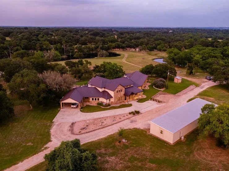 The improvements with the main lodge being 6 bedrooms eight bathrooms and a large living area is one that has one of the most beautiful settings overlooking the spring-fed Mustang Creek