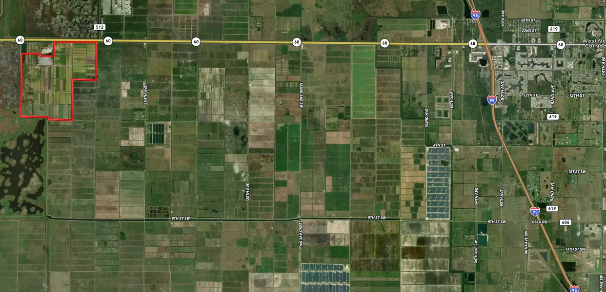 Discover a rare opportunity to acquire a sprawling 1,105-acre parcel strategically located on HWY 60, just west of I-95 and perfectly positioned between two of Floridas major transportation arteriesInterstate 95 and the Florida Turnpike.