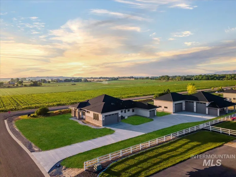 Luxury living in the heart of Idaho wine country w/ access to the Snake River, next to River Bend Golf Course & views of the Owyhee Mtns. No expense was spared in this one of a kind, custom home. Beautiful art deco stainglass inlayed front doors, highend LVP/tile & carpet flooring & top of the line Thermador kitchen appliances, including a 6 top gas range, double oven, micro & commercial refrg. Be amazed by the finishing touches of the walkin closets w/ barn doors, recessed ceilings, unique granite, soft close cabinets and drawers, whole house speakers/surround sound system & Smart House system & Alarm/Cameras & 27x40 covered patio w/ dual fans. This beautiful home has the perfect floor plan with plenty of room for everything & 3 car attached garage (1122sq) & the DREAM shop! 2832 sq shop that has 2 RV doors, standard 2 car door & separate drive through door/bay. Plumbed for an air compressor, reinforced concrete & elect to add lift, storage room & full heated bthrm. There is a hidden safe room!!