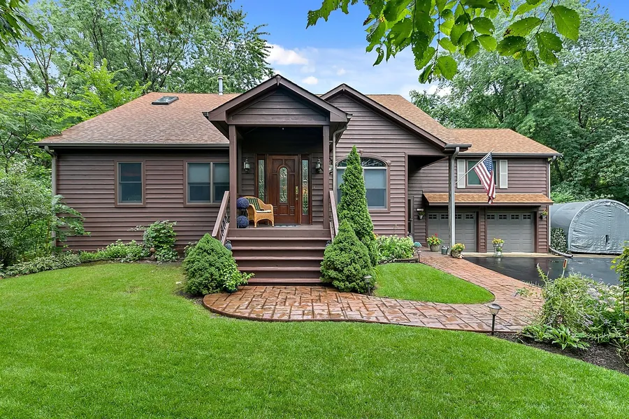 Enjoy your own personal nature reserve! Beautifully landscaped private retreat on an acre plus wooded lot. Ideal in-law arrangement on the main level with its own bath. Carpenter's own rebuild in 1995 with an large second floor addition and sunken basement. Electrical, insulation and plumbing updated in 1992. Newer tear-off roof in 2017. Vaulted ceilings. 5-zoned boiler heating with central air (2018). Andersen windows. Two hot water tanks. Open floor plan on the main level with a living/dining room combination and a large country size eat-in kitchen. Light wood cabinet kitchen with granite countertops. Walk-in pantry with pocket door. Stainless steel Jenair stove and Bosch dishwasher. Two main floor bedrooms (possible in-law suite with own bath and access to outdoor deck. 1 1/2 baths on the main level. Plenty of closet space. Family room has a tray ceiling and gas stone fireplace. Second level opens to a spacious loft and Master bedroom suite. Another large bedroom with walk-in closet plus a Master bath has jetted tub, granite vanity top, separate shower and skylight. Two additional bedrooms could be split off upstairs with their own windows and vaulted ceiling. Potential for up to a total of 6-bedrooms overall. Owner has architecture drawing for future possibilities. Lower level has a fully equipped summer kitchen, laundry room, a small office, a rec room with a wet bar and a full bath and cedar walk-in closet. Original side of basement has great storage room. Ceiling fans, custom can lighting dimmers, wired for internet, phone and cable in most rooms. Stamped concrete walkway. Two car attached garage with an extra boat/truck covered pad. Large storage shed in the rear of the yard for season lawn furniture, mower, etc. Two deck areas lead to a beautifully landscaped yard with a fish pond and waterfall, winding path on the north side of the home and hundreds of perennials and trees for easy maintenance. Natural wooded lot to enjoy year round. Home has City water and sewer plus it's own private well for watering the outside.