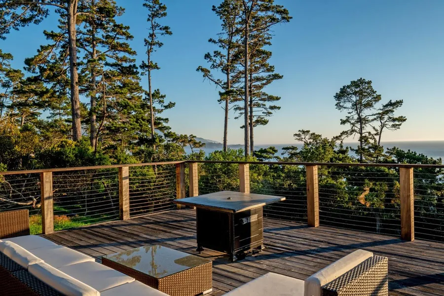 Located on the ocean side of Padre Lane, near The Lodge and Pebble Beach Golf course, this single level Post-Adobe home is set on one of the finest and best view lots in Pebble Beach featuring an expansive south west facing deck showcasing the sweeping views of Point Lobos and the Pacific coastline all the way to Big Sur. Upon entering the front door you are welcomed to a comfortable living room with vaulted ceilings and hardwood floors which opens to a dining area and kitchen all with sliding glass doors leading to outdoor living spaces. The spacious, sun-splashed, ocean view lot is the star of the show and offers lots of opportunity. The home includes 3 bedrooms, 4 bathrooms, and 2,750 SqFt of light and bright living space to enjoy the idyllic weather the Monterey Peninsula provides.