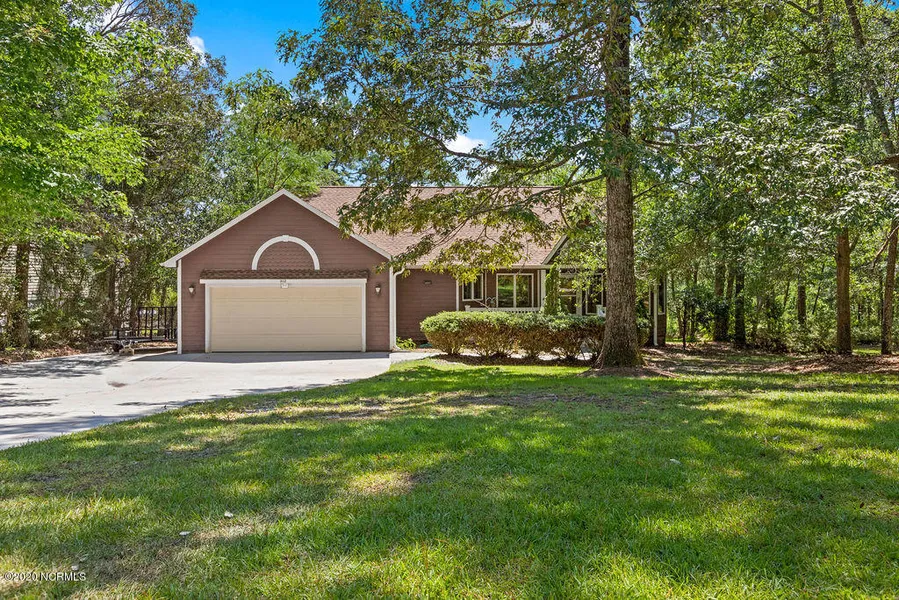 Do you have desires of a neighborhood with space between homes? Look no further! This home sits on 1.11 acres with mature trees. Once you roll past the security gate into Hickory Bluffs you will be pleasantly surprised by the natural landscaping in the community. When you reach the home, you will see it tucked amongst mature trees and landscaping. You are the perfect distance from you neighbors. The home offers 3 bedrooms, 2 bathrooms and a 2-car garage. The extra-long driveway allows for ample parking for all. As you walk up the slate walkway to the front stairs you will immediately notice the freshly painted large porch just crying out for rocking chairs. Once in the home there is a room to the right of the door that can be used as flex space...office, gym, playroom; you pick! To the left is the large kitchen which offers lots of counter space, storage, appliances and the dining area. Off the kitchen is a large laundry room with a lot of storage space as well. Continuing down the foyer you will walk into the well-lit living room where you will take notice of the high-pitched ceilings, large windows, fireplace and ceiling fan; certainly a room made for all to gather. To the right of the living room is the owner's bedroom. This room provides ample space for your furniture, a ceiling fan, a door leading the deck, a large walk in closet and an on-suite bathroom. This split floorplan offers two more large rooms on the other side of the home along with a large hall bathroom. Each bedroom has large closets as well. Outside in the back yard, you will notice that the home backs up to the Queens Creek. For the outdoor enthusiast, you can enjoy kayaking, paddle boarding, fishing and much more. Call today to preview this fantastic home.