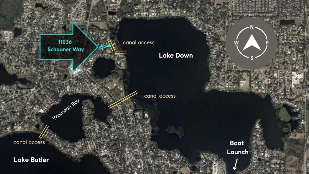 Research Parcel InformationI-4 to Conroy Windermere Road west toward the Town of Windermere. Conroy Windermere Road will become East 6th Avenue. At the traffic circle, keep right and take the first exit onto Main Street. At the next traffic circle, continue onto Maguire Road. At the stop sign, turn right into Marina Bay Estates and onto Schooner Way. The home will be on your right.