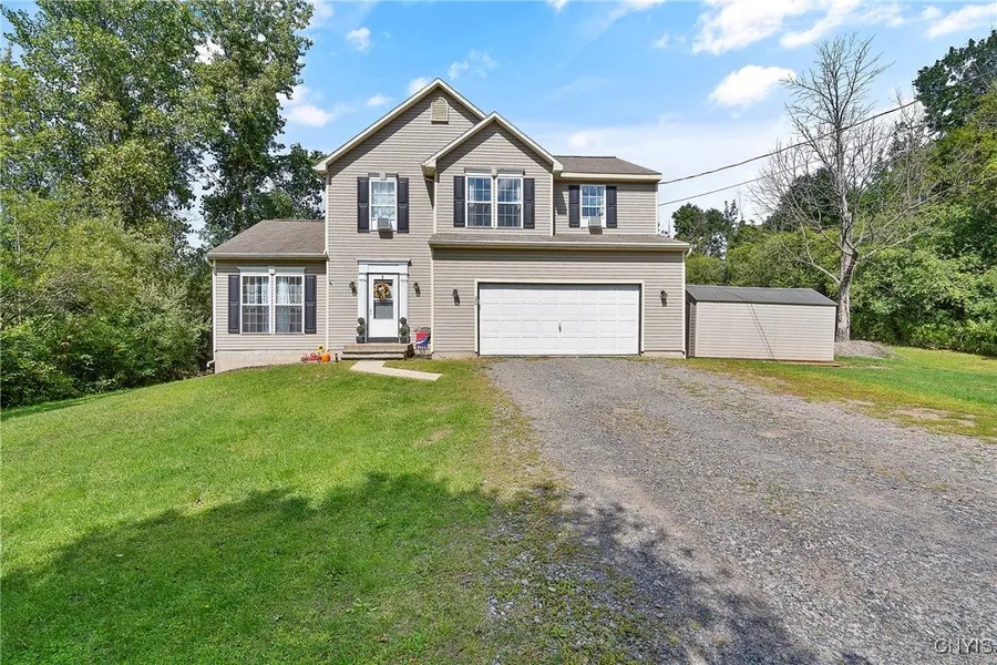 Charming colonial style home for sale located in Oswego, NY! This 2001 built home features four bedrooms, two full bathrooms and one half bathroom. Completely remodeled interior and hardwood flooring throughout. Formal living space with cathedral ceilings and great natural lighting from the skylights. Spacious kitchen with island and brand new stainless steel appliances. Breathtaking formal dining space with accent wall and built-in electric fireplace. First floor laundry and half bathroom for convenience. Oversized primary bedroom and bathroom combo with jacuzzi tub and double sink vanity located on the second level of the home. Three additional guest rooms with separate full bathroom. Two car attached garage and gravel driveway. Nestled on 1.11 acres of land with a back patio and private yard. Shed and trampoline convey with the sale of the home.