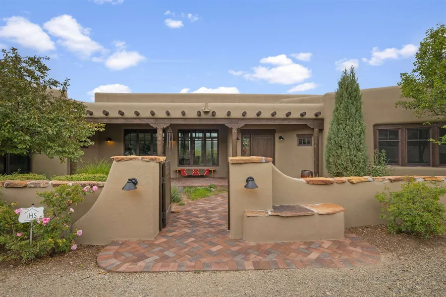 Poised on one of the premier view streets in all of Monte Sereno, Aspen View, this classic Santa Fe Pueblo style home with no steps features extraordinary mountain views, elegant finishes, great living spaces, topped off with a three car garage plus a storage room. The main room/sala speaks of Old Santa Fe, yet opens to an expansive outdoor portal which brings the huge views into the home. The homes configuration features three bedrooms suites, a family room/media room off of the kitchen, and a large private office area. Plaster walls, handsome flagstone/walnut hardwood/ and brick floors, tin-ceiling in the office, open kitchen concept with pantry, numerous distinctive fireplaces, bonus exercise room in the owners suite and other custom features distinguishes this one-owner home from lesser spec home finishes. Top it off with recently completed new stucco finish and two year old protecti...