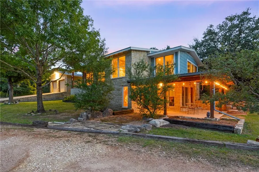 NO HOA, NO RESTRICTIONS, nestled on OVER AN ACRE! Drive up to a little piece of true country beauty nestled in the desirable Lake Travis area. This home is the perfect place to call your own. This 3 bedroom and 2 bathroom home features a one-of-a-kind sunroom, beautiful wood floors, black and white checkered floors, stainless steel appliances, plenty of natural light throughout the home and much more! With a 1+ acre lot, fully fenced and 2 patio's, this house has room to roam! The sunsets are absolutely spectacular from the big windows in the living room. The house features gorgeous stone and wood accents throughout. Large separate 2 car garage with plenty of space for a large workman's area or converting into a studio. The house is nicely decorated on the inside foyer with beautiful limestone stone and hardwood stairs truly brings out the beauty of this home. Metal roof, new front windows, 2 new front doors being installed in mid NOV. Galley kitchen, with beautiful dark poured countertops, gas stove, double white sink. Step outside to the large upstairs covered patio with views of the Texas Hill County and nature that surrounds this home. Close to shopping, HEB, Baylor Scott White, LTISD, numerous restaurants and about 15 min away from the Galleria or 12 min from Steiner Ranch. Looking for some fun lake access? Lakeway offers many public marinas all with in a short driving time.