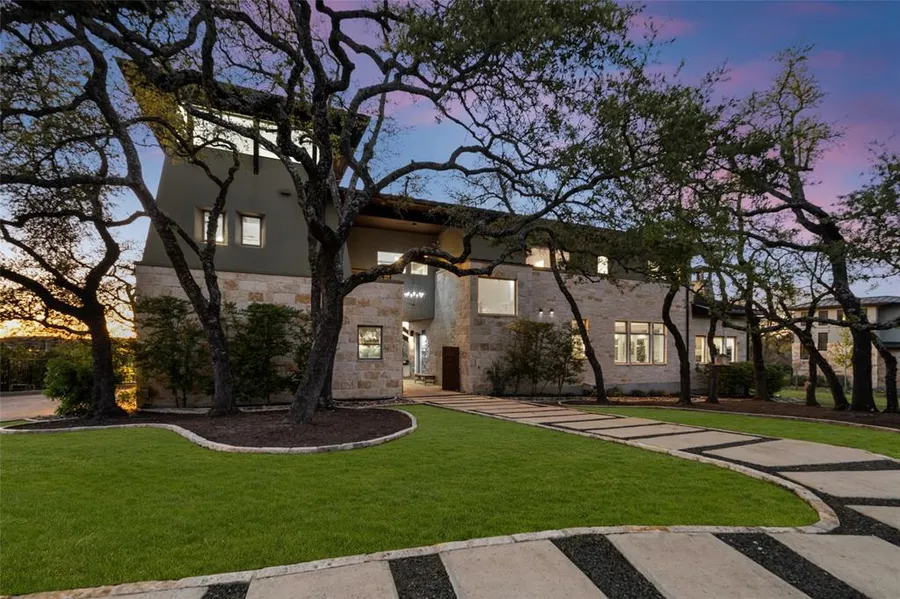 Are you looking for a modern hill country home that offers luxury amenities and plenty of space to relax both inside and out? Then this stunning 1.1-acre property in the coveted Belvedere gated community is your perfect match! The main living area of the home features a kitchen, dining, and living combination with gorgeous stained concrete floors. Guests enjoy a detached guest house with full bath and has a bath with outdoor shower for pool area. Could also be used as an office or artist's studio with great natural light! The second level has wood floors throughout with no carpet! There are multiple walls of sliding glass doors offering an abundance of natural light throughout the home as well as providing access to multiple outdoor spaces where you can enjoy the pool and hot tub surrounded by mature oak trees. The chef's kitchen is fully equipped with professional appliances while allowing plenty of room to entertain guests or just relax at breakfast. Enjoy views for miles from the third-level gym or office area. The owner's bedroom also provides direct access to the pool & hot tub area making it perfect for unwinding after a long day. It even comes complete with its own spa bath featuring built-in cabinetry in multiple areas. Other amazing amenities include a sports court, lazy river pool, clubhouse, walking trails, fishing lake, and exemplary Lake Travis schools - all within a beautiful private setting that you'll never want to leave! Plus - the tax rate is only 1.9%. Don't miss out on this must-see home - contact us today for more information!