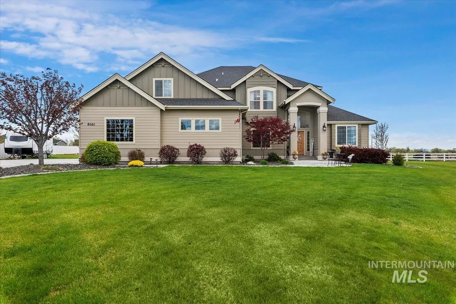 NO HOA in this GORGEOUS custom home in desired Kingsbury Meadow Sub at the end of a quiet cul-de-sac. Details are well thought out on this stunning home on over an acre fully fenced with pasture. The large entry welcomes you with soaring ceilings that lead to the great room where you can relax by the wood burning fireplace. Open floor plan opens into the spacious entertainer's kitchen with oversized island and large pantry for all your storage needs. Windows throughout the south facing home allowing the natural light in without the harsh heat. The master will not disappoint with an ensuite featuring dual vanities, soaker tub, large walk-in shower and his and hers closets with W/D hookup. Hot tub hook up in serene back yard ready for your relaxation. Oversized garage to house all the toys. The large, covered patio leads to fully landscaped backyard with garden space and shed. Owned solar ...