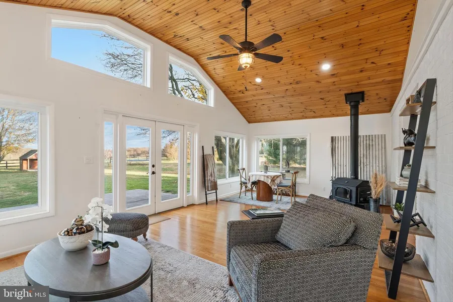 This property does have direct access to Fair Hill! Welcome home to this beautifully maintained brick rancher offering over 3,000 square feet of finished living space on a stunning 1+ acre lot adjoining the scenic Fair Hill area - a perfect setting for equestrian enthusiasts and nature lovers alike. The main level features 4 spacious bedrooms and two full baths, along with a new rear addition that expands your living area and fills the home with natural light. Downstairs, the walkout basement includes a full in-law suite with an additional bedroom and a new updated bath, ideal for extended family, guests, or potential rental income. This home is both charming and energy-efficient, featuring eight owned solar panels - not leased - to help significantly reduce your electric bills while promoting sustainability. Outdoors, you'll find a peaceful, park-like yard filled with organic fruit trees and berry bushes, offering the perfect balance of beauty, privacy, and function. The expansive lot provides ample space for gardening, entertaining, or adding a small barn or paddock. With solid brick construction, modern updates, and direct access to Fair Hill's trails and open countryside, this property is the ideal blend of comfort, practicality, and country living at its best.