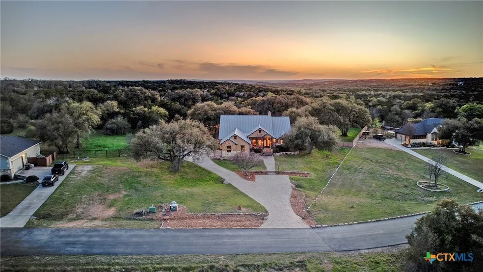 Welcome to 487 Big Sky, your dream home in Texas Country Estates! Nestled on a 1.12-acre lot that backs up to an undeveloped ranch and zoned to the highly acclaimed Comal ISD, this spacious 3-bedroom, 3.5-bathroom beauty offers 3,295 square feet of luxury living. From the moment you step inside, you'll be greeted by sleek luxury vinyl flooring that flows seamlessly throughout the home. The expansive open-concept living area with stunning stone fireplace and built ins leads into a dining room and gourmet kitchen featuring quartz countertops, gas cooking on a 36" professional stove, warming drawer, wine fridge and custom cabinets all while looking out the wall of windows into your exceptional backyard. Speaking of backyard, enjoy resort-style living right at home with your very own Keith Zars pool with sunning deck and spa, surrounded by turf and a concrete cool surface, ideal for hot Texas summers. The upstairs bonus room is a true retreat, offering a full bath, kitchenette with bar and 3 mounted tvs, and a private balcony that overlooks the stunning views of the surrounding ranch. It s the perfect space for guests, media room (see: surround sound, projector and screen!), exercise room, or even as a private office. Other standout features include: surround sound throughout the inside and outside of the home, irrigation system in front yard and backyard, new iron front door, two new HVAC units, new water softener and gutter guards. Don't miss this detail: the exterior of the home is fitted with custom TrimLight, permanent lighting with programmable colors, great for every holiday and security! This home offers the perfect blend of tranquility and luxury, with plenty of room to entertain and relax. Whether you're looking for a peaceful retreat or a place to host family and friends, this home in gated Texas Country Estates is a must-see. Don t miss your opportunity to make this dream home yours!