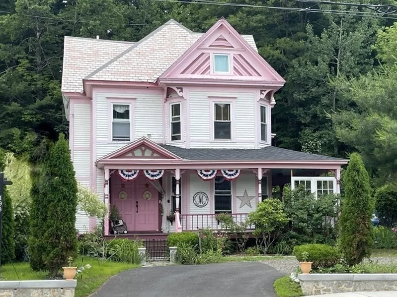 Nestled in Charlemont, MA, this Victorian gem offers convenient lodging/Airbnb opportunities. Positioned along the Mohawk Trail, bridging Pioneer Valley and the Berkshires, it offers swift access to Berkshire East Mountain Resort for skiing and biking, and the Deerfield River for tubing and fishing escapades. Boasting 6 en-suite bedrooms, including one with a private bath, and 2 suites featuring kitchenettes, it caters to every guest's comfort. Unwind on the secluded deck, patio, or quaint porch. The primary suite, boasting spacious living/dining quarters and a sunlit kitchen equipped with laundry hookups, presents an appealing option for owner residency. Recent upgrades, such as a new furnace, replacement windows, updated electrical systems, and flooring enhancements, ensure modern convenience. Whether contemplating an owner-operated Airbnb/Bed & Breakfast, or a serene family retreat, this property embodies the perfect blend of historic charm and contemporary amenities.