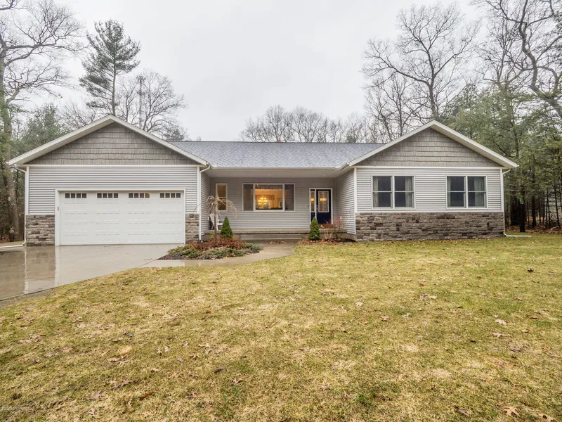 Beautiful Home in desired neighborhood and school district. This 4 bedroom, 3 1/2 bath Home boasts over 4,000 finished square feet. The main floor features an open floor plan with cathedral ceilings, main floor laundry and a large master with en-suite. The Kitchen features solid surface countertops, cherry cabinets and stainless appliances. The Rec room invites entertaining with a bar area with a sink. The Home has surround stereo speaker system, a Nest, and a Ring! There is something for everyone outdoors too; large deck off the dining area, private setting on just over an acre, underground sprinkling and a 30x36 pole barn!