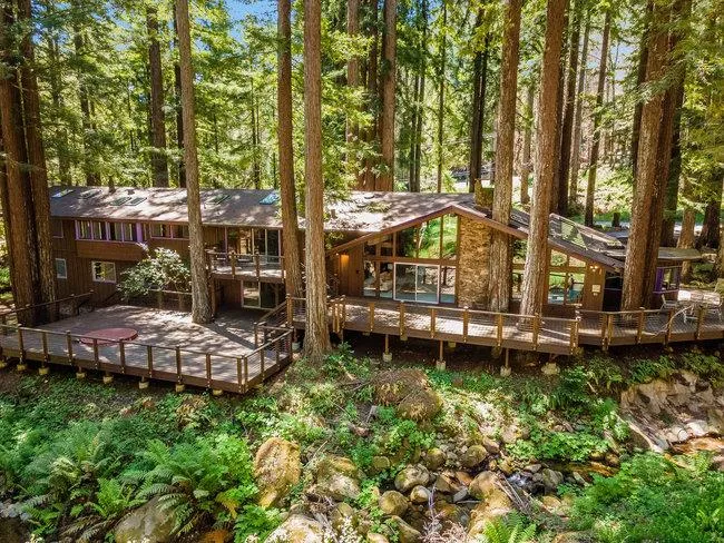Your Own Private Zen Oasis in the Mountains. Spectacular, resort-like estate surrounded by redwoods, nestled alongside the calming flowing water of Jamison Creek. Easily accessible location just 6 minutes from downtown Boulder Creek and equal distances to Santa Cruz and Los Gatos. High vaulted, open beam ceilings with numerous skylights and floor-to-ceiling windows invite abundant natural light filtered through the redwood canopy. Enormous multi-level private deck with Hot Tub. Grand Master Bedroom. Multiple En-suite guest bedrooms. Living space with separate entrance offers a perfect guest suite or au pair accommodations. 2 Car Garage + separate 1 Car Garage that could also be a workshop. Tons of Mountain Charm with redwood interior, stained glass lighting and 3 massive Fireplaces. Whether you are looking to work from home, retire to a peaceful location, or be equal distances to the oce...