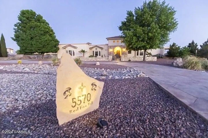 Welcome to your dream property on over an acre! This hacienda style home features 3 large bedrooms, 3.5 baths, a large living room with gas kiva style fireplace, a formal dining room, an office/den space with a half bath, a chef's kitchen with an abundance of cabinet space, granite counters, island, and breakfast bar. Oversized Owner's suite with a completely remodeled bathroom that has a large shower, separate soaking tub, and a large double vanity. Outside, you will find your own oasis complete with an in-ground pool with an automatic cover, a top-of-the-line hot tub, and a lovely fountain in the middle of your patio area. You'll love the 4-car garage plus an additional large RV carport that is complete with a 16x16 workshop/storage room. 50-amp electrical panel and RV dump station as well. Enjoy the separate grass areas for additional space and impeccable landscaping throughout the pr...
