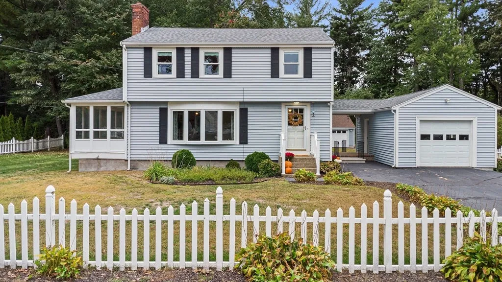 Welcome to this inviting 3-bedroom, 1.5-bath Colonial in sought-after North Wilmington. Situated on over an acre of flat, private land, this home provides a serene setting with ample outdoor space. Inside, hardwood floors run throughout, with all three bedrooms located upstairs. The cozy kitchen is conveniently accessed through a breezeway that connects to the heated 1-car garage, perfect for all-weather entry. Upstairs, built-in cabinets and drawers in the hallway offer added storage. A sunny front-to-back sunroom, filled with windows, serves as a bright retreat for relaxation or entertaining. The full basement offers endless potential for future expansion or customization. A unique highlight of this property is the detached 40x24 heated 2-car garage with an attached office/workshop, ideal for a home business or creative space. With parking for up to 10 cars, this home is perfect for hosting gatherings. Easy access to Route 93 and the train station makes commuting a breeze. OH FRI 4