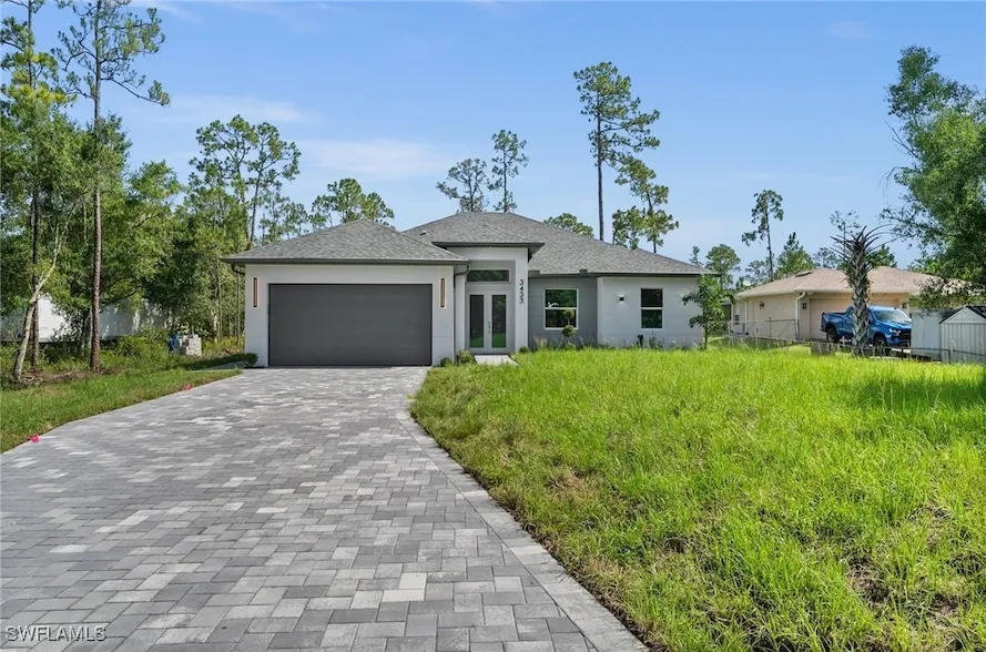 READY TO MOVE IN! Discover the unique Nova model featuring 4 bedrooms and 3 full-bathrooms located in the very desirable Golden Gate Estates. The property sits on a 100% upland lot FULLY USABLE. Offering 1,774 sq. ft. of A/C living space and nearly 3,000 sq. ft. under roof, the home showcases luxury details throughout, including 48" x 48" imported porcelain tile, soaring ceilings, and impact-resistant windows and doors. The custom kitchen features quartz countertops, a dramatic waterfall island, soft-close cabinets, and top-of-the-line stainless steel appliances, complemented by custom closets in every room. Enjoy an extended paver driveway with extra space, caminery, and a spacious extended patio with a built-in outdoor kitchen perfect for entertaining. The reverse osmosis water system delivers purified water throughout the entire home. Located in a peaceful section of Golden Gate Estates, with plenty of room for a pool or guest house and just minutes from Naples amenities, top schools, and beaches. NO HOA and HOME WARRANTY INCLUDED!