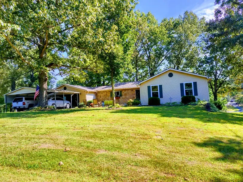 4 bed 3 bath home on over an acre very close to KY Dam marina/resort/camp ground. Over 3100 sq ft on main level and walk out basement. Additional unfinished sq ft and wood shop on lower level. Lots of storage. Huge open living and dining overlooking deck the length of the house. Kitchen with new fridge, stove, counter tops, and back splash. Main level baths completely upgraded. Master bed has private ensuite bath. Utility rooms on both levels so you don't have to go up and down stairs. This large home also has all new windows, carpet, and paint. 2 car attached garage and 2 car carport. Very large outbuilding could be turned into a tiny home. 2nd outbuilding for storage. 2 driveways for lots of parking. Rock pond with waterfall at entrance. Move in ready!