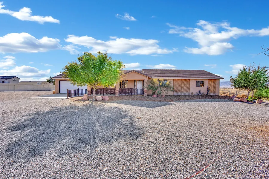Enjoy peaceful, wide open, mountain views with gorgeous sunsets in this beautiful Ranch style home with 3 beds/ 2 bath, large great room with vaulted ceilings, remodeled kitchen and dining room with new appliances, custom cabinetry and counters, new lighting and ceiling fans and a built-in buffet to match the kitchen. Custom touches added by the master carpenter and owner. Separate Laundry Room with door to the back yard. Home is powered by its own solar panels and has a private well, septic and water softener/ filtration system, fully fenced with covered patio. Garage is equipped with workshop and storage. Even has a well house, storage building, and full-service RV hook ups with gated parking. Located in the south side of the beautiful Pahrump Valley with quick access to Vegas, 45 minutes. Pahrump Valley is known for its outdoor activities and off-road enthusiasts, wineries, golf cours...