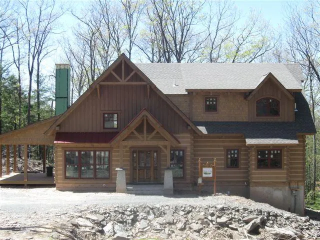 Beautifully handcrafted hybrid of log & timber frame w/design by the esteemed Moss Creek Mountain Homes. Located on the 6th tee of Paupack Hills CC. Exciting features include: boat slip; 4 FPs; magnificent master bdrm suite w/porch, walkin shower & FP; outdoor living area w/kitchen & FP; chef's kitchen, wine cellar & much more. Loaded w/ detail.