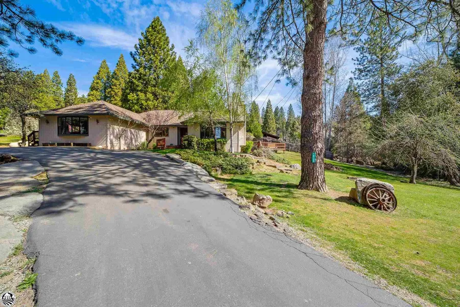 Privacy and Space in Twain Harte! This 3 bedroom 3 bathroom 2378 square foot home is situated on a well manicured 1.14 acres in the Brentwood Park neighborhood of Twain Harte and has ACTIVE Brentwood Lake Membership!! Featuring a detached oversized 3 car garage with a full bathroom this house is one that you will call home for years to come! With a large bonus room that can be used as a bedroom, family room, or game room you'll find the interior spacious and accommodating. Exposed beam cathedral ceilings provide light in the dining room which is situated just off the open concept kitchen. Both rooms feature beautiful hardwood floors. Conveniently let yourself onto the back patio through the dining room sliding doors and open a world of possibilities from BBQ's, family gatherings, star gazing, to a quiet cup of coffee. The sizable master suite additionally features exposed beam ceilings a...