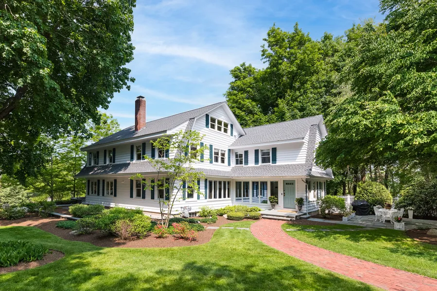 Tucked away in the Highlands, yet close to the shops, restaurants, and attractions of Bristol, this thoroughly and thoughtfully renovated home sits amidst park-like grounds. The very best original craftsmanship of this home was retained, while all the amenities for ease of modern living were added. The details here are reminiscent of the days of grand old seaside summer homes, yet the aesthetic has been updated to seamlessly blend new with old. In the eat-in kitchen, custom cabinetry and vintage-style lighting pair with Viking appliances. A large dining room and great room with fireplace continue the flow of rooms. A first floor home office has ample closet space and could do double duty as a bedroom, and the partially finished basement offers additional flex space. Upstairs, five bedrooms and three full bathrooms occupy the second floor, with water views from many of the windows. The primary bedroom with en suite bath and walk-in closet has vaulted ceilings and abundant natural light. Climb the stairs to the attic for an architectural treat: a room wrapped in original woodwork that calls to mind Bristol’s yacht-building heritage.Outside, enjoy the patio and stone walls, water feature, fire pit, and saltwater swimming pool. The guest cottage offers a full bathroom, kitchenette, living space and a heated garage bay. A separate garage has four stalls and unfinished space above. Your opportunity to experience turnkey living just in time for summer in the Highlands has arrived.
