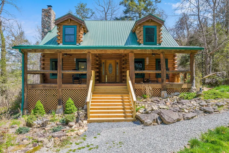 Welcome to your 1.15 acre private oasis on Roan Mountain! This 4 bedroom, 4 bathroom log home is ready to offer you privacy with your very own running water soundtrack thanks to the creek located at the back of the property! Nature lovers can enjoy the sight from the large covered front porch, the generous back deck or take the private stairway down to the creek. Inside, you will find a luxury cabin kitchen open to dining space and a spacious living room, complete with a fire place. A bonus area on the main level can be used as a formal dining room or an office. Upstairs you will find two guestrooms and a bathroom, as well as the primary ensuite featuring a walk-in closet and a large bathroom with a tub for soaking those long days away (stove is decorative, but buyer can have connected). Below the main level, you can find the fourth bedroom and bathroom, as well as another living space with a fireplace. Improvements to note:Water heater, heat pump and furnace replaced 3.5 years go, all new windows (upstairs 2 years old, main level 1 year old), lighting on the main level, new gutters and ice breakers on the front, home was stripped and stained 2 years ago, new dishwasher and more! Come out and see this place and you may never want to leave! Only 17 minutes from Johnson City and approx. 30-40 minutes from Beech Mountain and North Carolina Ski country! All information deemed here in to buyers verification