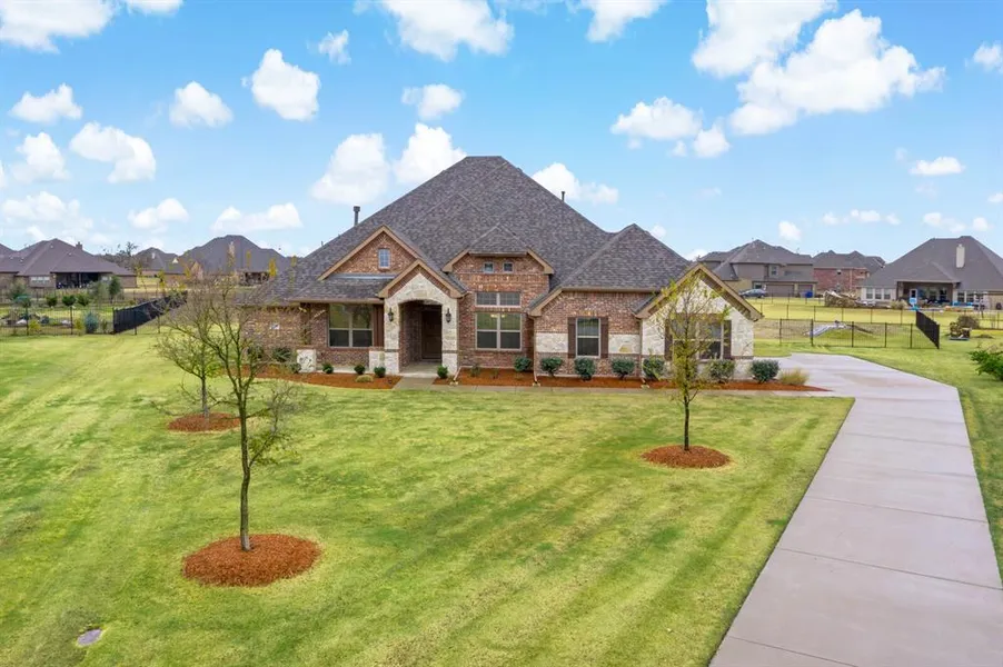 Need to get away? Check out this ranch style home on a 1 acre cul-de-sac lot located in Rockwall ISD! Step inside to wood floors, high ceilings, & a versatile dining room off the foyer. Straight ahead is a large open family room featuring a floor to ceiling stone fireplace & hearth. A large granite breakfast bar opens to a spacious kitchen with stainless appliances including a gas cooktop. The owners' suite is private with plenty of room to relax & boasts an ensuite bath with a large walk-in shower & oversized walk-in closet. Opposite the master is a large game-media room adjacent to a full bath. Step outside to a big covered patio overlooking a fully fenced backyard with a built-in storm shelter. A Must See!