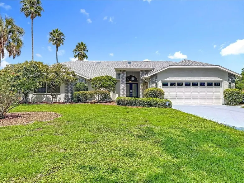 $15k Price Reduction! Welcome to Woodland Waters! This stunning lakefront pool home sits on over 1 acre and offers breathtaking views. Featuring 3 bedrooms, 2.5 baths, a 2-car garage, and a private office, this residence blends elegance and functionality. The inviting dual-door entry opens to soaring vaulted ceilings, a spacious great room, family room, den, and formal dining. Crushed shell flooring flows throughout, adding unique charm. The chef s kitchen showcases granite counters, stainless steel appliances, gas stove, double oven, breakfast bar, dining nook, and walk-in pantries. The primary suite includes a sitting area, walk-in closet with organizers, jetted tub, separate shower, and dual granite vanities. Extras include central vacuum, French doors, pocket sliders, ceiling fans, and abundant storage. Outdoors, enjoy a sparkling pool with pool bath, open patio, gazebo, irrigation w...