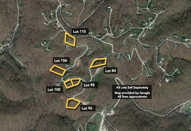 Auction Starts: 9:00 AM 1/17/2016 Auction Ends: 10:00 AM 1/19/2016 Nominal Opening Bid: $25,000. Approx 1.16 acre residential lot in Quarry Creek. Lots 96, 98, 100, 106 and 115 sell separately. Note: An Auction Service Fee will apply for this property. Please see Terms of Sale for details. Broker Licenses: WV Dean C. Williams RE LIC WV0021993; Williams & Williams RE LIC WV0021993