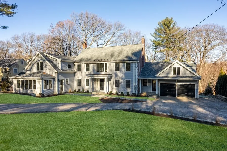 Nestled on 1+ acre of exquisitely manicured grounds, enriched by mature trees, stone walls and patio. This residence has been masterfully and tastefully renovated (2021) with beautifully appointed interiors. A gracious entry leads to a charming living room with French doors, an elegant dining room with fireplace, an open floor plan highlights a family room with a wall of glass doors; adjacent to a gourmet kitchen replete w/pair of 9' islands, Dolomite counters, high-end appliances and a sun-drenched eat-in area. The serene home office, half bath and custom mudroom complete the first floor. Three levels of design perfection offer front and back staircase,5 bedrooms, 5.5 designer baths, a luxurious En-suite primary bedroom with vaulted ceiling, opulent bath and 2 walk-in closets. The expansive walk out lower level allows versatile usage,a great room w/fireplace,a grand game/media room, full bath and bonus room-ideal for a home gym. Minutes to the Habitat, Belmont Ctr., Cambridge & Boston