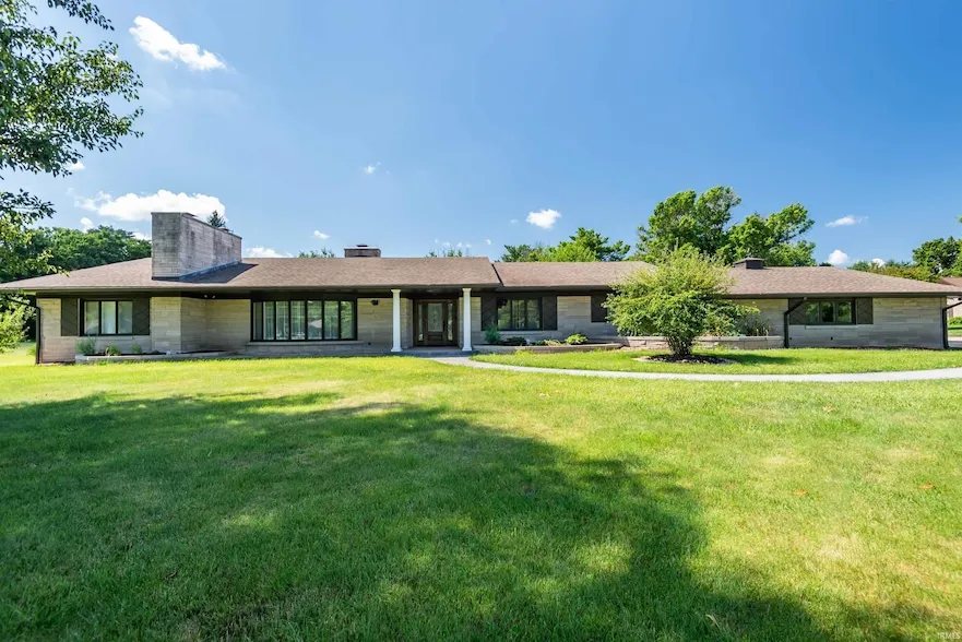 This mid century modern home is in one of Bloomington s most established areas and has had fantastic updates to its beautiful 1956 original design. This gorgeous limestone low profile ranch is on an estate lot of 1.16 acre. Entertain large groups in this re-mastered kitchen with island, double oven, gas cooktop, granite accents, vegetable sink, plus a secondary dual kitchen for additional prep. Beautiful hardwood flooring extends through this freshly updated home with three dedicated bedroom suites with freshly updated baths, formal living room with limestone fireplace, formal dining room, dedicated main level, study, and beautiful glass sliders that lead to the limestone patio and garden like backyard. There is an unfinished lower level that s perfect for recreation or projects. There s a convenient two car garage that is attached plus a two car detached garage for additional storage. T...
