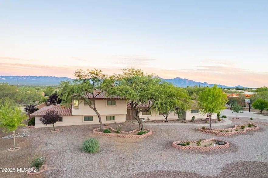 RESORT STYLE HOME IN SAHUARITA! Your own piece of Heaven in this MAGNIFICENT TRI-LEVEL HOME on 1.16 acres! Enter the main level into livingroom, diningroom, kitchen and laundry. Two sliders will take you to your own OASIS!Pool, spa, water-feature, built-in BBQ to sit 6 plus a ramada w/ an outdoor Fire Pit, fruit trees, matural grass area, and lighting. Discreetly you will see 2 sheds for storage behind pool wall. In lower level 3 full BR with dbl closets, BA with 3 sinks, HUGE MANCAVE with built-in wet bar/family room/game room. Upper level is the master bedroom w/ majestic mountain view from balcony, walk-in closet and stunning BA with lots of natural light. Upgraded beautifully throughout the home are beveled glass windows and sliders. You'll want to call this home!