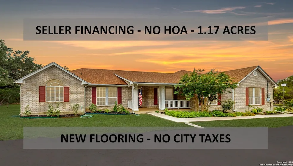EXCITING SELLER FINANCING OPPORTUNITY! Open plan single-level three-bedroom home in excellent condition on 1.17 acres with many mature, manicured trees in conveniently located Northwood Hills neighborhood. New wood laminate flooring in entry, study, dining room, living and breakfast nook. New neutral carpet in all three bedrooms. Luxurious primary bathroom with oversized walk-in shower, twin vanities, and dual walk-in closets. 17' x 14' covered patio. 16' x 11' storage shed. No City property taxes. There is