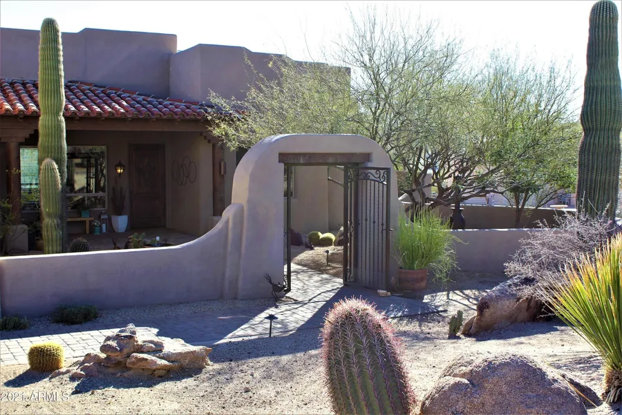This Territorial home invites you in on a pavered walkway, thru a custom metal gate & into a relaxing courtyard. Then WOW...you walk inside & see right out to the amazing view! Look around & WOW again, as this Home is Beautiful! A Well Thought Out, Open Concept, Split Floor Plan w/High Quality Finishes & Just Freshly Painted. The Great Room Features a One-of-a-Kind Custom Designed TV Wall & a Fireplace that Runs on Propane. The Kitchen has Granite & Plenty of Knotty Alder Cabinets which Match the Interior Doors; a Continuity that Makes the Home Warm and Classy. Outside is an Entertaining Paradise...Covered Patio, 800 SF of Artificial Turf, a Huge Built-In BBQ Area & Oh Yeah...That VIEW! There is an RV Gate & Plenty of Parking. Check Out the Pictures-You May Just Fall in LOV