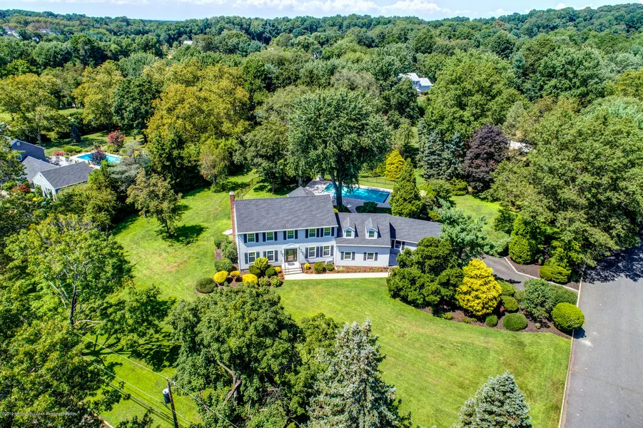 Vacant & ready for immediate occupancy! Out of town owner is permitting private showings. Fantastic opportunity to own a spacious & gracious center hall colonial with separate in-law apartment in Kings Valley area of Middletown! This 4,000 sq ft, 5 bedroom, 3.5 bath home is set on a 1+ acre private corner lot with 2 car garage & heated concrete in ground, salt water pool/spa. This well-loved home has a huge great room with fireplace, wet bar, french doors to deck overlooking private backyard. Large eat-in kitchen with maple cabinets (cherry finish), granite, expansive center island, 2 dishwashers. Two level in-law apartment has so many possibilities.. guest home, home office, pool cabana. Currently has large 1st fl living area, kitchen, laundry; 2nd fl bedroom & 1 bath. Multi-zone heat & air, sprinklers, retractable pool cover, full basement, 2 newer baths, some HVAC updates. Newer roof, vinyl siding, sewer line. Minutes to parkway, NYC ferry, bus service, beaches, hiking at Hartshorne Woods, plus dining, shopping in downtown Red Bank!