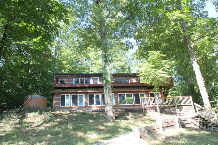 "Soaring Eagle" Overnight Tourist Rental for up to 4 guests. Located along the water's edge with a stunning view of Lake Monroe. Wonderful relaxation awaits. Brick fireplace with gas log, beamed ceilings. Master bedroom, full bath and kitchen/dining area. Lower level has large rec room/family room with a queen size Murphy bed. 1/2 bath. 3-seasons room with lake view is a great gathering place. Of course there's a hot tub and campfire site. Storage shed. Log siding. Path to the lake.