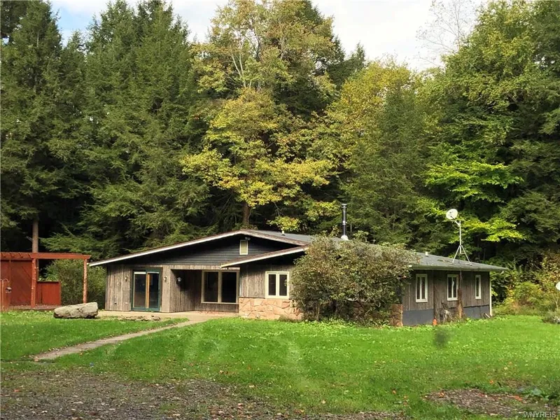 Tucked in the woods at the end of a private road is where you'll find this well built 3 bedroom 2 full bath ranch with a pole barn for all your storage needs. Easy to heat with the wood stove & electric baseboard heat throughout make this is a great place for full time living or a vacation home. Lots of updates already done & some left for you to finish as you like. Low Salamanca school taxes & the Ellicottville bus stops at the corner of Hungry Hollow & Woodland so you can take advantage of the low tuition for out of district students. Atlantic BB for internet & TV are an added bonus, new septic 3 years ago, roof 10 years old & newer pole barn with concrete floor gives you a head start to country living at it's best!