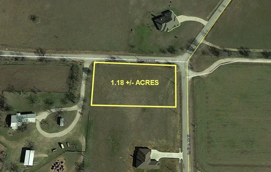 Nice 1.18 acre lot on the corner of Indian Trail and Bernard Rd., outside city limits, great country views, 2000 sq. ft. building minimum, Bolivar water meter on the property and will convey with the lot, minutes to town, Lake Ray Roberts, state parks, and boat ramps.