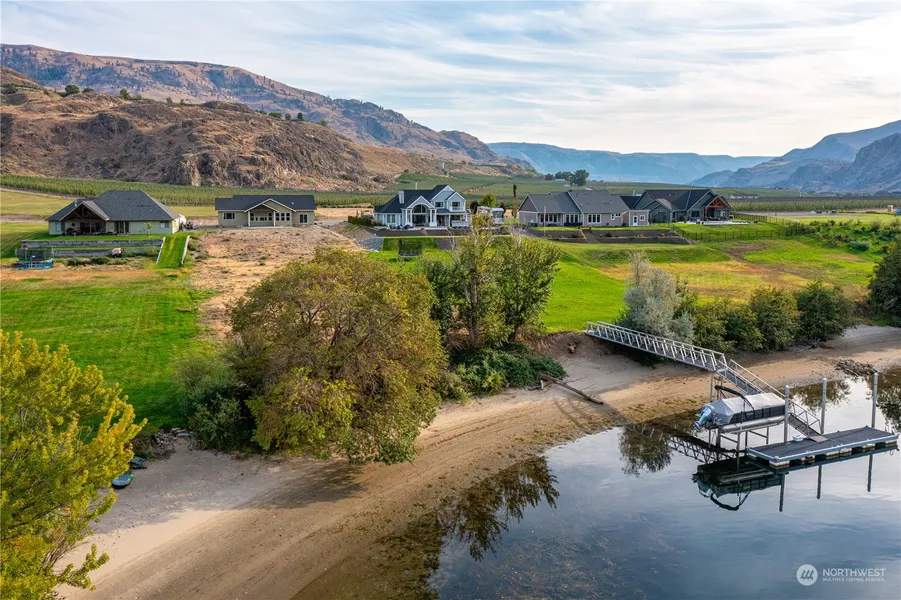 Soon to be completed new build in the highly desirable Beach at Corral Creek. This 27 lot gated community is conveniently located just minutes to downtown Chelan & is home to some of the nicest homes on the Columbia River! This beautiful home sits on 1.18 acres with 100+ feet of sandy beach waterfront & has a private dock shared with 2 neighboring properties. It has been designed for effortless living with everything conveniently located on one floor. With the Columbia River and Mountains on one side & lush orchards on the other, it couldn't feel more idyllic! Irrigation water is included & the seller is providing a closing credit to finish out the landscaping as you'd like. This is the perfect spot to bring your Waterfront vision to life!