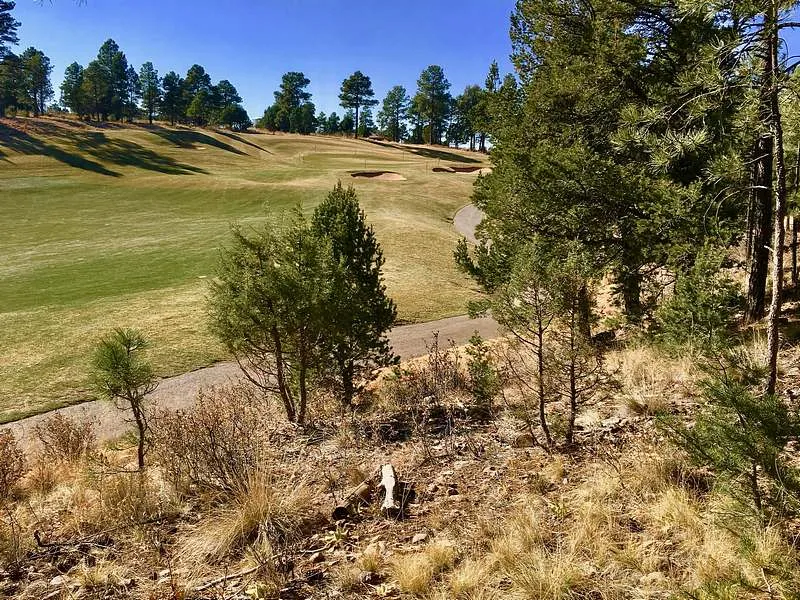 Super building lot, super price @ Outlaw. Fabulous location just off 13th fairway-across from 15th fairway. Private & secluded. Mountain level 1.2 acres w/tall pines, mountain views (SE solar gain). Level access & entry w/several choices for homesite! Owner finance possible. 36 holes of championship golf, tennis, dining, pool & exercise facilities.